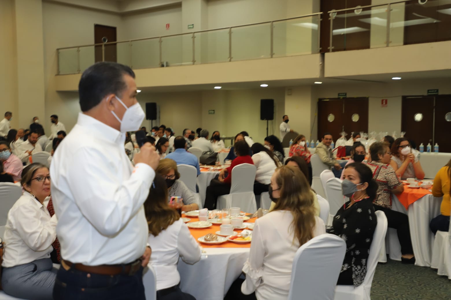 “Es un gusto recibirlo, en esta región y expreso mi beneplácito de contar con su presencia, además de los jefes de sector, supervisores, directores, sub directores, jefes de enseñanza, secretarios y representantes de centros de trabajo, cada uno desde nuestra trincheras trabajamos por nuestra organización en pro de la educación, todos juntos somos y formamos la organización nueve del SNTE”, precisó.