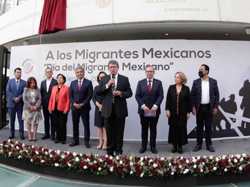 Ricardo Monreal Ávila, presidente de la Junta de Coordinación Política, estuvo presente en la ceremonia donde se develó, en letras doradas, una leyenda alusiva a nuestros migrantes.