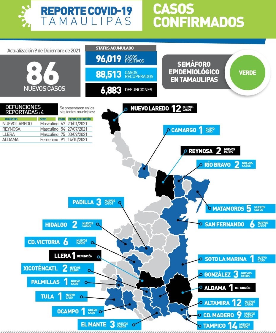 Supera Tamaulipas los 96 mil contagios de Covid; van 6 mil 883 muertos