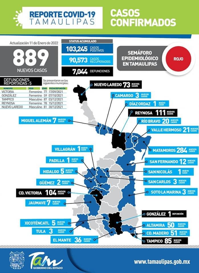 Ciudad Victoria, Tamaulipas (11 de enero de 2022).- La secretaria de Salud, Gloria Molina Gamboa advirtió hoy que Tamaulipas se encuentra en una cuarta ola de contagios y que será sólo la conciencia social la que determinará la duración y rumbo de la pandemia, por lo que reiteró el llamado a vacunarse y limitar el contacto social.