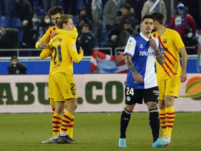 BARCELONA, ESPAÑA, 23 DE ENERO DE 2022.-El FC Barcelona superó 0-1 al Deportivo Alavés este domingo en la jornada 22 de LaLiga española celebrada en Mendizorroza, gracias a un gol de Frenkie de Jong en el minuto 87, para seguir en la pelea por la zona de Champions League, aunque sufriendo.