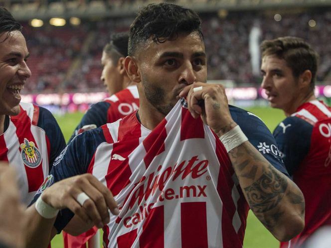 El asfixiante ritmo de Chivas no bajó y tras una falta cerca del área, Alexis Vega tomó el balón y lo colocó de manera perfecta para hacer el 3-0 por la vía del tiro libre y en la compensación del primer tiempo.