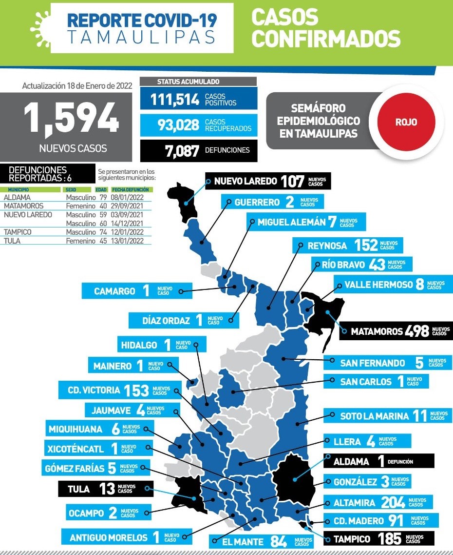 Covid se dispara más en Tamaulipas; ahora 1,594 contagios y 6 muertos