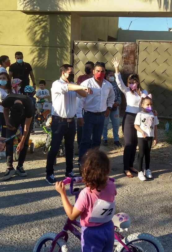 Ciudad Victoria.- En apego al compromiso con la comunidad deportiva, el Gobierno Municipal tuvo presencia en la versión 2022 de la Carrera Ciclista Promocional Infantil, en honor a Antonio –El Pitufo- Tadeo Núñez (+), celebrada en el Fraccionamiento Villa Jardín.
