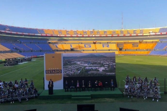 Monterrey, Nuevo León. 13 de Enero del 2022.- Un megaproyecto así lo denominan y fue anunciado el nuevo estadio del equipo de Tigres, se mantendrá dentro de las instalaciones de la Universidad Autónoma de Nuevo León, para que el plantel deje el Volcán, con 55 años de historia. En una conferencia sobre la cancha de futbol actual inmueble, fueron revelados los detalles de esta obra, la cual será diseñada por el despacho de Populous.