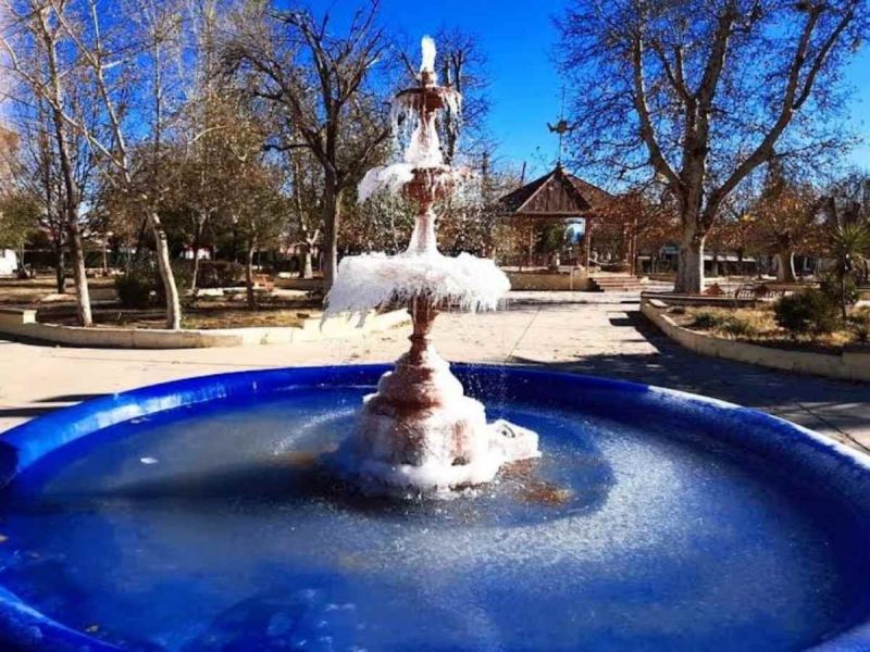 Frío congela calles y fuentes en Sonora