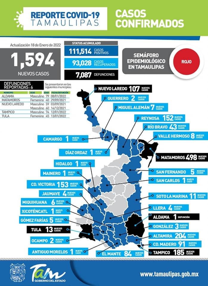 Ciudad Victoria, Tamaulipas (18 de enero de 2021).- Tras registrarse un nuevo pico de COVID-19 durante la jornada de este martes, la secretaria de Salud de Tamaulipas, Gloria Molina Gamboa exhortó a la sociedad a proteger a los más vulnerables, limitar el contacto social y reforzar las medidas de prevención, en virtud de que la variante Ómicron, dominante en la cuarta ola, es altamente transmisible.