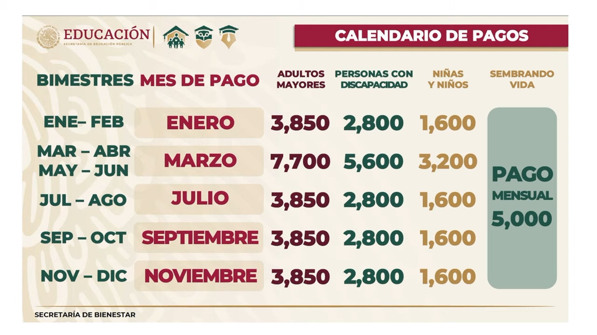 A continuación te presentamos las fechas de pagos de los apoyos del Bienestar a lo largo del año: