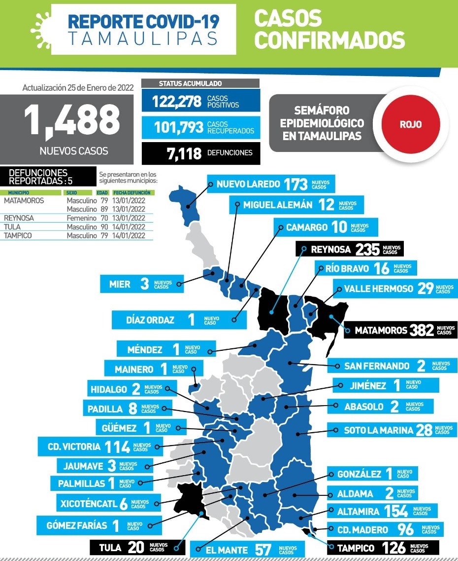 Tamaulipas mantiene casi mil 500 contagios diarios de Covid-19
