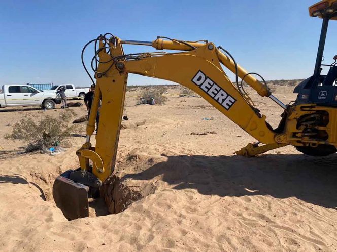 Con ayuda de maquinaria se trabajó en un área desértica ubicado en el camino de terracería que conduce del canal de La Mesa a la carretera libramiento San Luis Río Colorado-Golfo de Santa Clara, cerca de 300 metros al Sureste del Basurón Municipal.