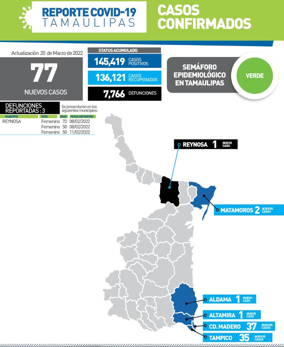 Cuatro muertos más de Covid en Tamaulipas y 95 nuevos contagios
