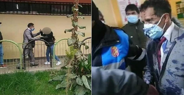 Antes de que pudiera sellarse en enlace matrimonial, los cuatro hijos ingresaron al inmueble y arrojaron pintura al hombre. Después lo llenaron de reclamos ante la mirada atónita de los presentes.