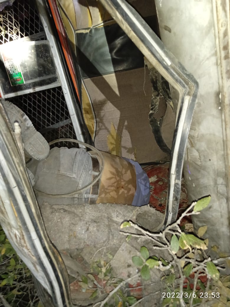 Miquihuana, Tamaulipas (7 de marzo de 2022).- Lamentable tragedia se registró en el municipio de Miquihuana donde dos hombres perdieron la vida y tres personas entre ellas una menor resultaron heridas debido a que la camioneta en que viajaban cayó a un voladero.