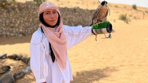 Por medio de su cuenta de Instagram nos ha compartido todos los momentos que le ha tocado disfrutar en su viaje, pero sin duda las fotos en donde aparece en el desierto utilizando un turbante es algo impactante, pues en su foto comenta lo feliz y emocionada que se encuentra.