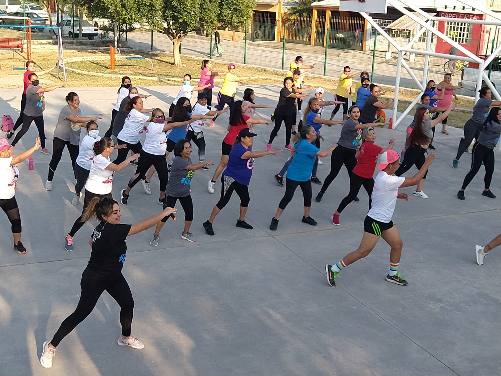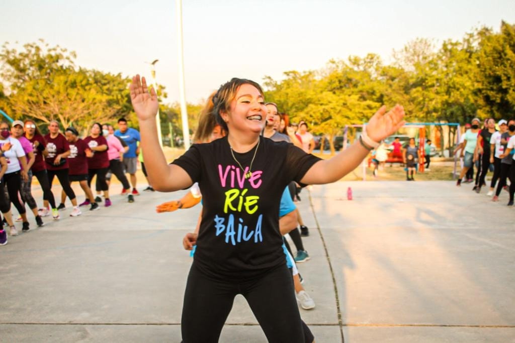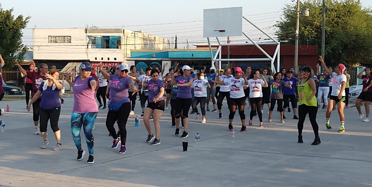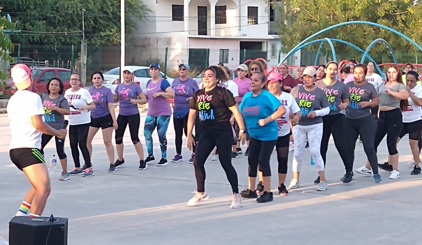Acompañada de varios instructores deportivos municipales, la profesional Idaly logró reunir nutrido número de alumnas bailando y haciendo ejercicio.