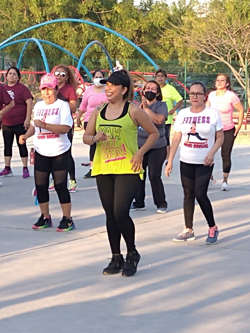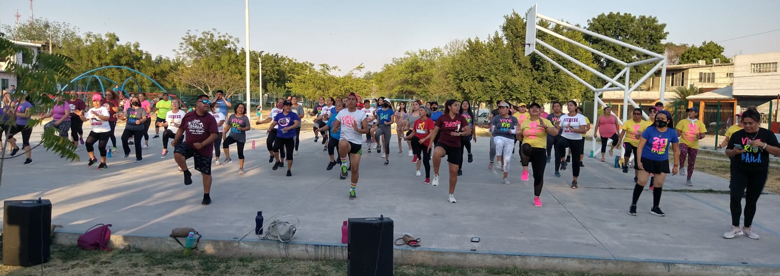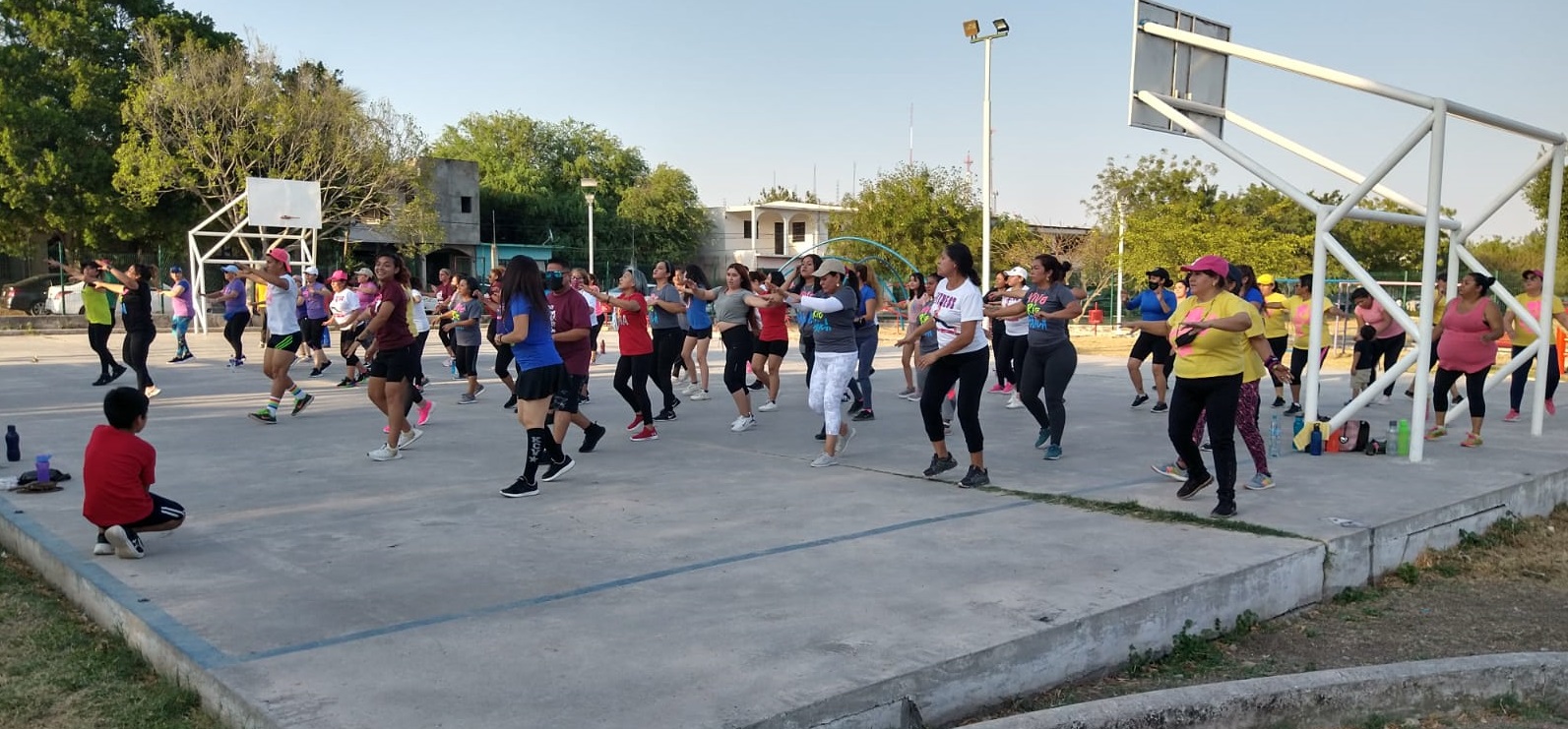 Acompañada de varios instructores deportivos municipales, la profesional Idaly logró reunir nutrido número de alumnas bailando y haciendo ejercicio.