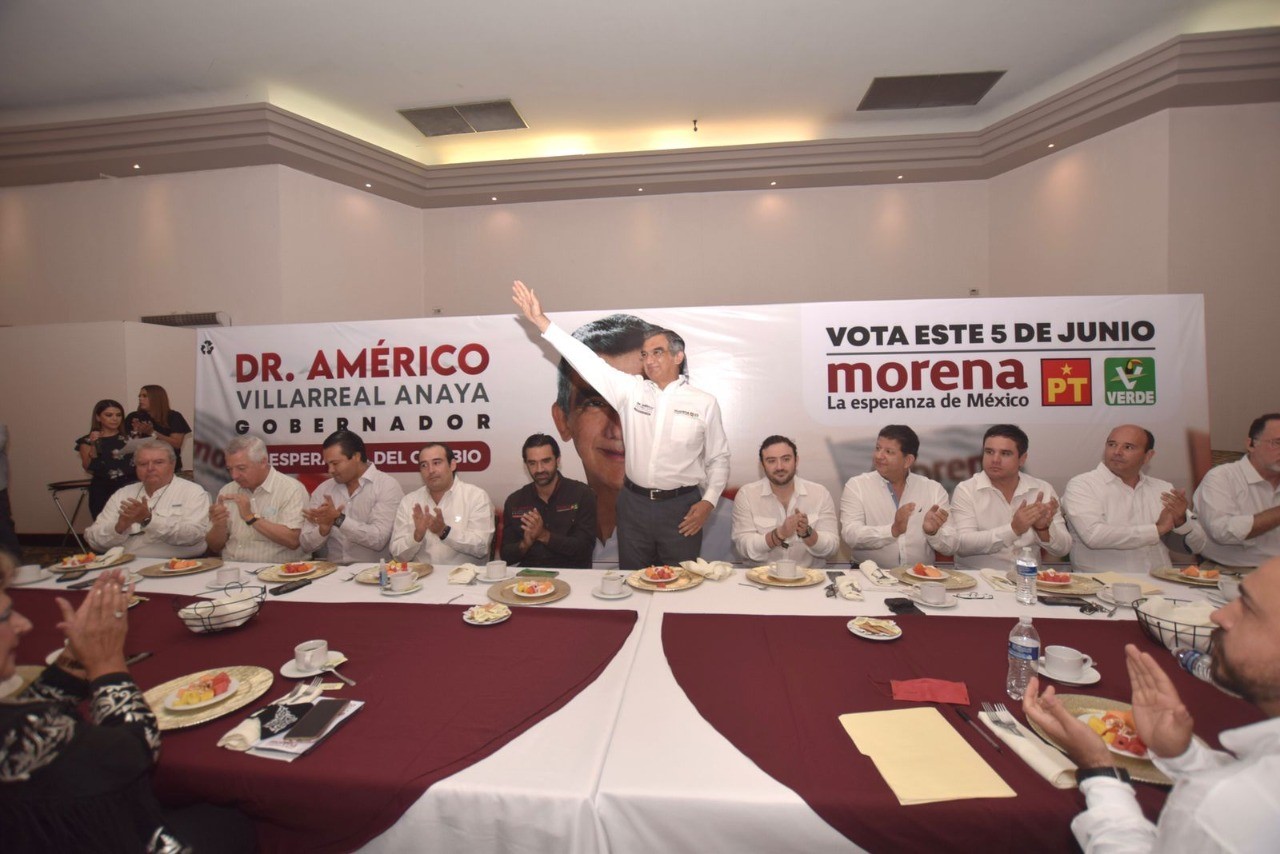 CD.  VICTORIA, TAMAULIPAS, 23 DE ABRIL DE 2022.- El candidato a gobernador de Tamaulipas por Morena- PVEM y PT , Doctor Américo Villarreal Anaya, se comprometió ante empresarios locales  a impulsar  obras de infraestructura que detonen el desarrollo de las diversas regiones y su integración estatal que permitan aprovechar mejor el potencial e incidan en el desarrollo humano con justicia y progreso para todos.
