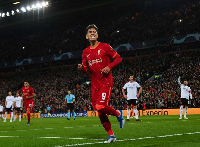 LIVERPOOL, INGLATERRA, 13 DRE ABRIL DE 2022.- El Liverpool terminó de cumplir su misión y selló su pase a semifinales de la Liga de Campeones, tras empatar 3-3 ante el Benfica con doblete de Roberto Firmino, este miércoles en Anfield, en la vuelta de los cuartos de final, haciendo valer el triunfo 3 a 1 logrado en la ida en Lisboa.