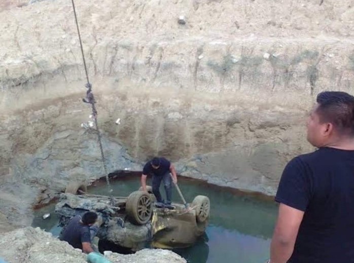 Dentro de la poza se hallaba un coche Chevrolet tipo Sonic color amarillo con placas de circulación NBX-4740 del estado de Texas y en su interior estaban los cadáveres de dos femeninas y de un masculino. Todos ya tenían un avanzado estado de descomposición.