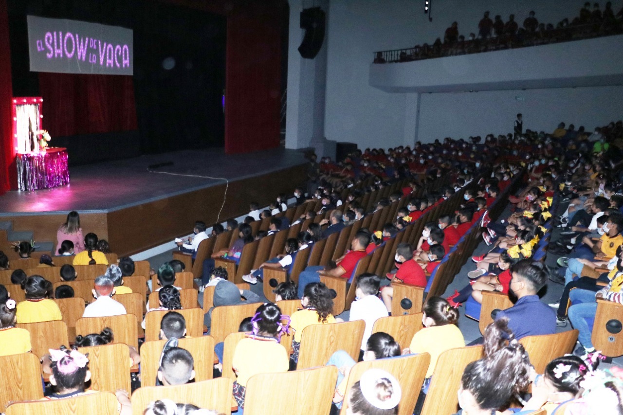 Los niños y niñas de las primarias “Josefa Ortiz de Domínguez”, “Adalberto J. Argüelles”, “Adolfo Ruiz Cortines, así como de la Casa Hogar y de los Centros Asistenciales de Desarrollo Infantil disfrutaron de un gran espectáculo presentado a través de la obra “El Show de la Vaca”.