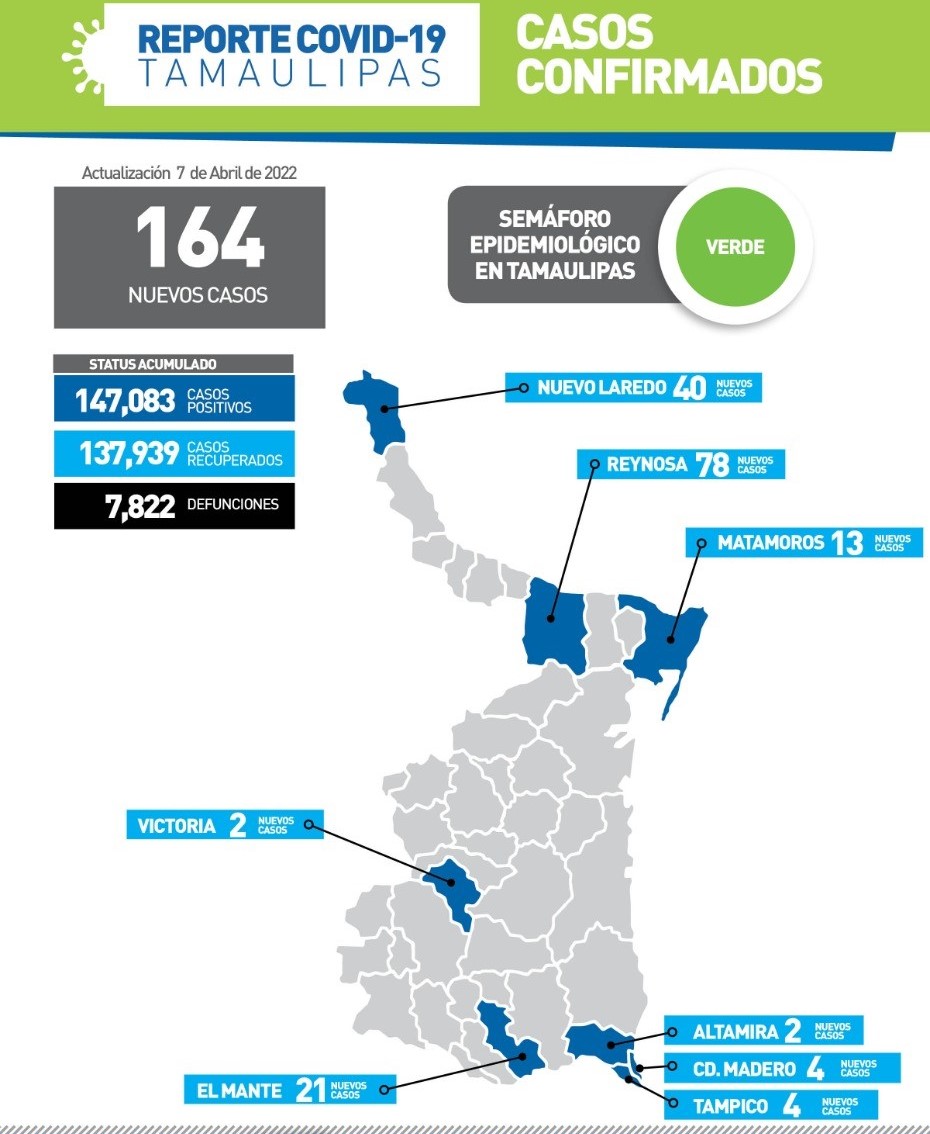 CD. VICTORIA, TAMAULPAS, 7 DE ABRIL DE 2022..- Por segundo día consecutivo Tamaulipas no registró