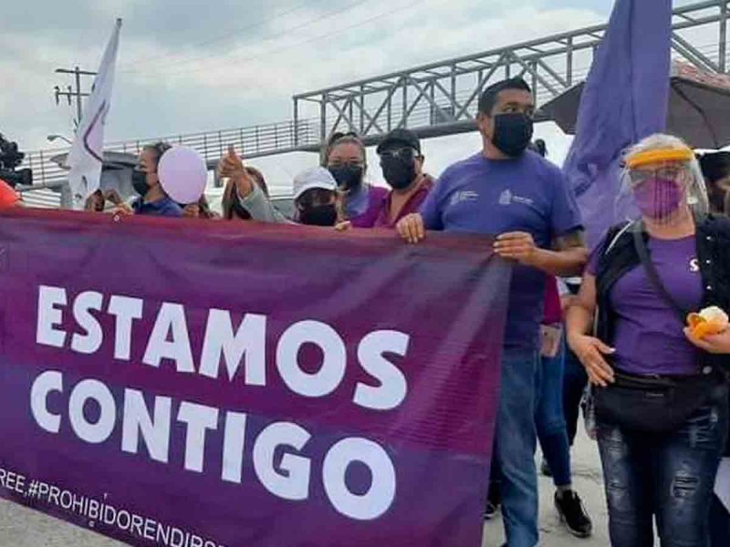 Como si se tratara de un mitin político, hombres y mujeres llegaron portando pancartas y playeras en color morado, que distinguió la pasada administración.