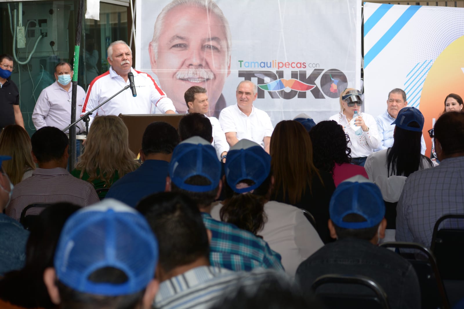 Lo acompañaron el rector de la Universidad Tamaulipeca, Doctor Oscar W. Aguilera Rodríguez; el senador Julen Rementería, Rene Cantú, presidente del Partido Acción Nacional, así como la señora Mercedes Aranda de Verástegui y Martha, César y Vicente Verástegui Aranda.