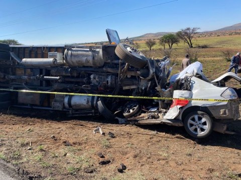 GOMEZ PALACIO, DURANGO, 21 DE MAYO DE 2022.-Un accidente carretero cobró la vida de cinco personas en la libre Durango-Gómez Palacio la mañana de este sábado.