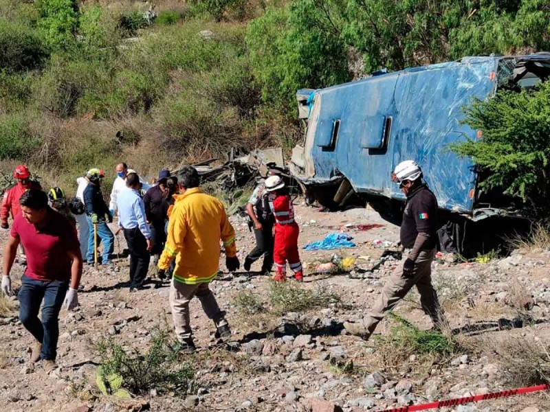 Un autobús de pasajeros volcó en el municipio de Mexquitic de Carmona, dejando un saldo de por lo menos seis personas sin vida y decenas de heridos, todos migrantes.