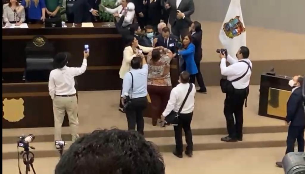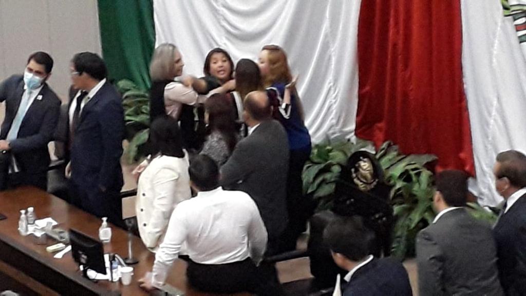 Se imponían los gritos de “vendida, vendida, vendida”, dirigidos a las Diputadas Leticia Vargas Alvarez y Nancy Ruiz Martínez.