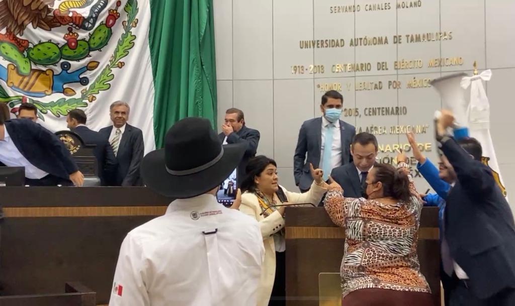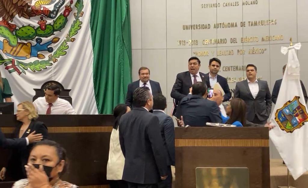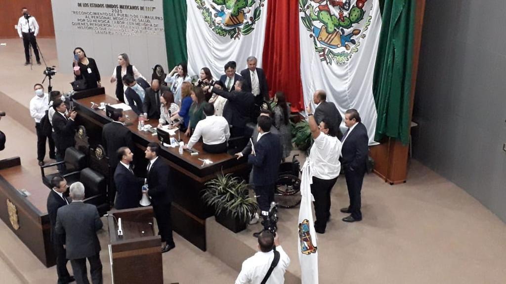 CD. VICTORIA, TAMAULIPAS, 13 DE JUNIO DE 2022.- Un intento de “albazo legislativo” de las bancadas del PAN y PRI para reformar la Ley Sobre la Organización y Funcionamiento Internos del Congreso del Estado Libre y Soberano de Tamaulipas, a fin de mantener la Junta de Coordinación Política y modificar leyes con el apoyo de mitad más uno de los diputados en vez de las dos terceras partes, fue abortado por la bancada de MORENA y simpatizantes, que tomaron la tribuna y entraron al recinto.