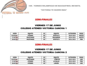 Ciudad Victoria.- El primer torneo de basquetbol infantil “Victoria te quiero más”, organizado por el Departamento del Deporte y la Juventud Municipal, programa para este fin de semana encuentros de la etapa semifinal.