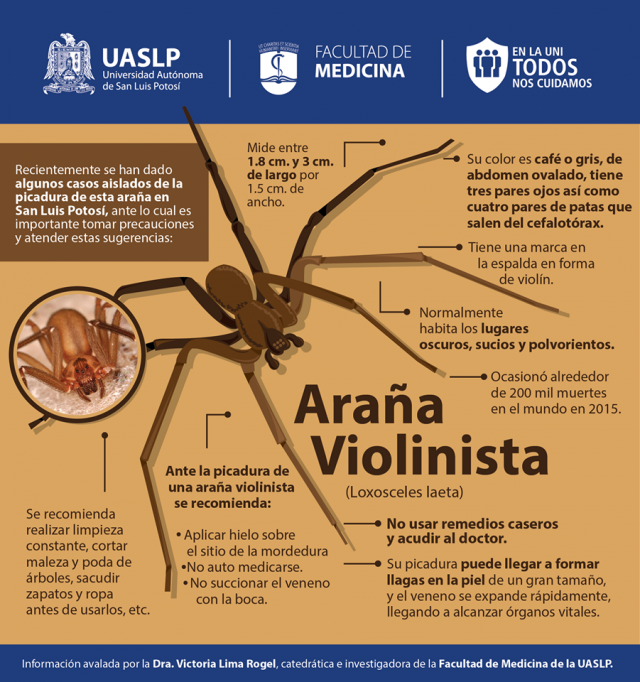 El 50 por ciento de las personas que son mordidas por una araña violinista mueren y es que en ocasiones graves el veneno de este arácnido puede ocasionar falla renal aguda, desorientación y lesiones a nivel pulmonar.