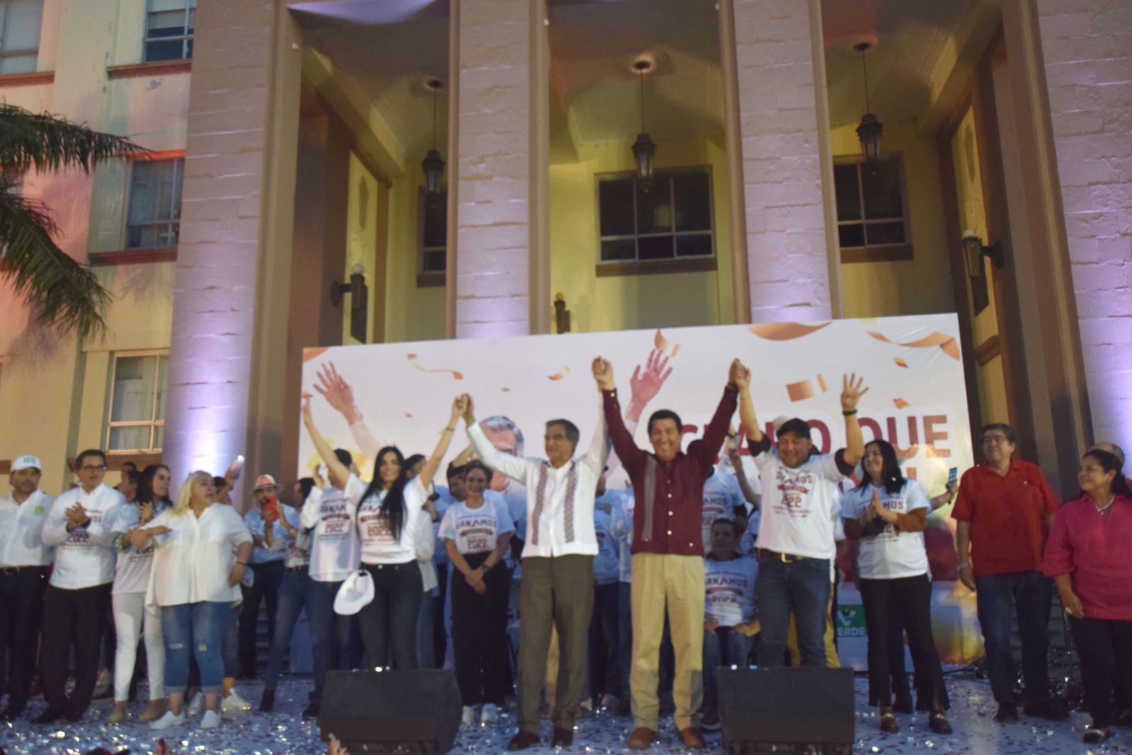 CD. VICTORIA, TAMAULIPAS, 6 DE JUNIO DE 2022.- La fiesta por el triunfo del doctor Américo Villarreal Anaya se prolongó hasta este lunes y una vez más miles de tamaulipecos se reunieron en la plaza Juárez, para celebrar la llegada de la Cuarta Transformación y del primer gobierno de izquierda a la entidad.
