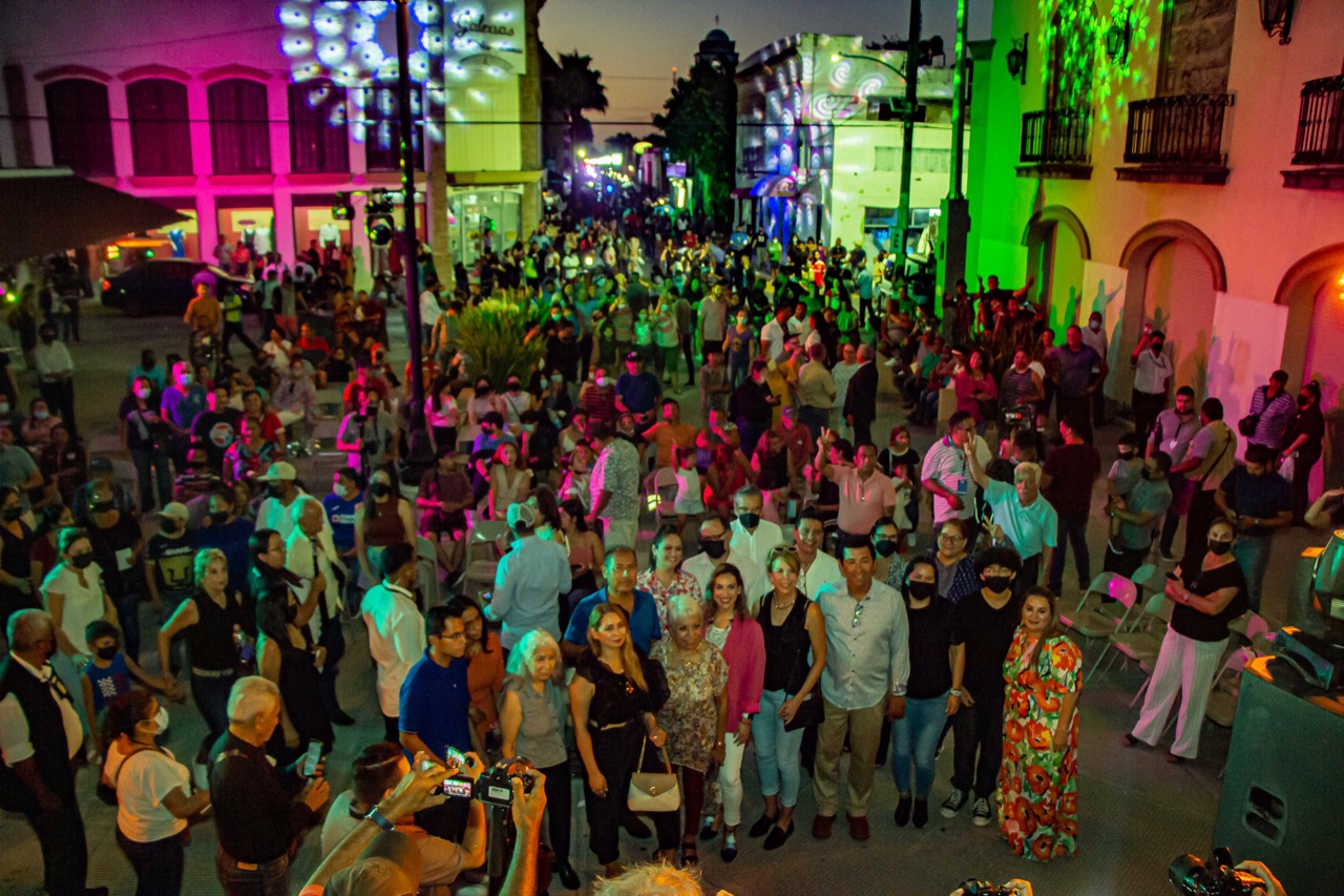 Tras dos años de no presentar actividades, este viernes por la noche la Calle 9 cobró vida al ser reinaugurada por el alcalde Mario Alberto López Hernández, quien fue acompañado por su esposa Marsella Huerta de López y por la Cónsul General de Estados Unidos en Matamoros, Yolanda A. Parra.
