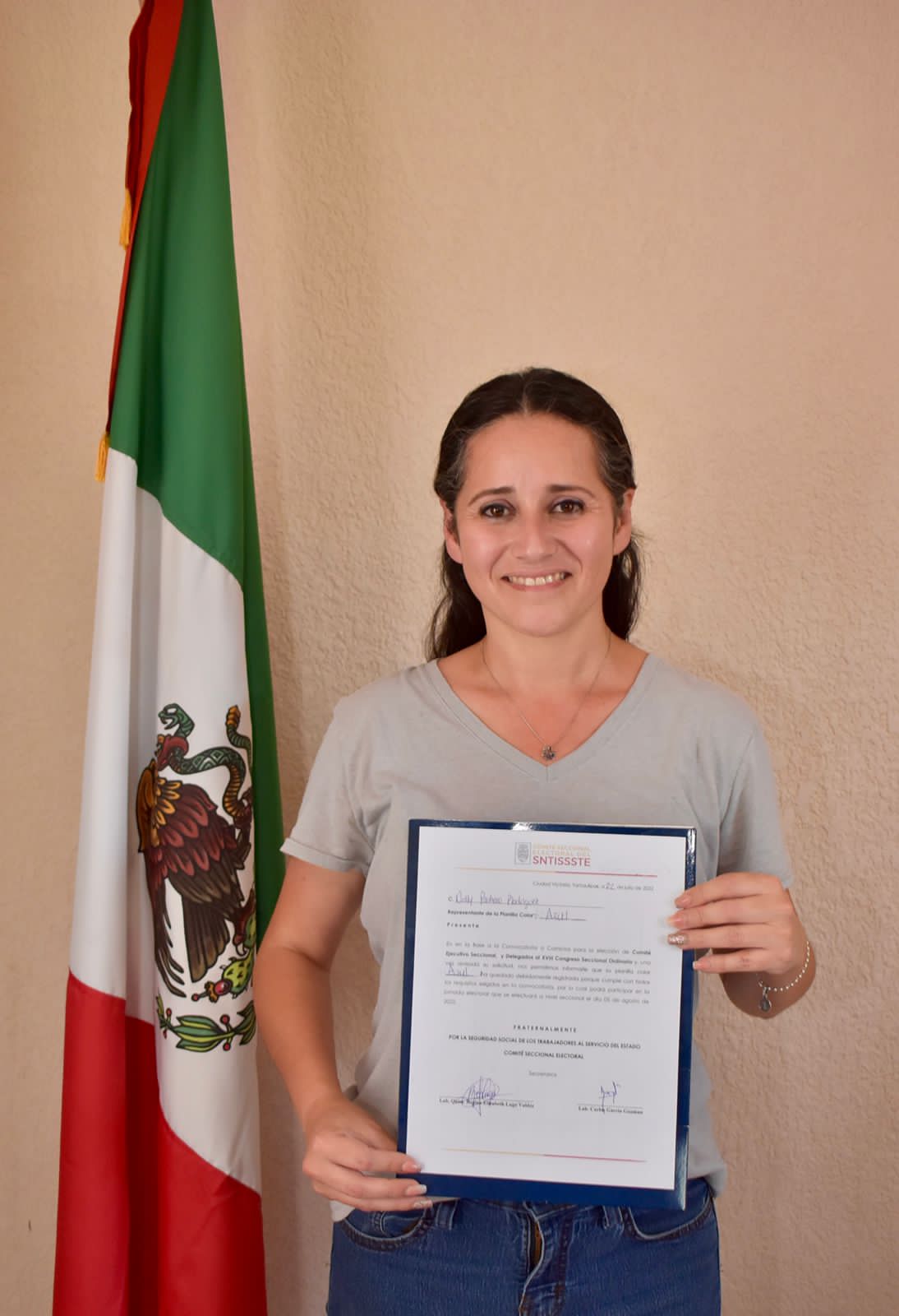 Ciudad Victoria, Tamaulipas (22 de julio de 2022).- En las oficinas del Comité Ejecutivo del Sindicato del ISSSTE Sección XXXIII del Estado de Tamaulipas, se llevó a cabo el Registro formal de la Representante de la Planilla Azul, Nelly Pacheco Rodríguez, para contender para la elección del Comité Ejecutivo Seccional en Tamaulipas y a la vez el registro de delegados al XVIII Congreso Seccional Ordinario a celebrarse el día 5 de Agosto de 2022.