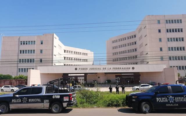 Culiacán Sinaloa, 25 de julio del 2022.- Después de la intensa movilización de las Fuerzas Armadas y de las corporaciones de seguridad publica se descarto que hubiera artefactos explosivos dentro de las instalaciones del poder judicial de la federación ubicadas en Aguaruto, al poniente de Culiacán.