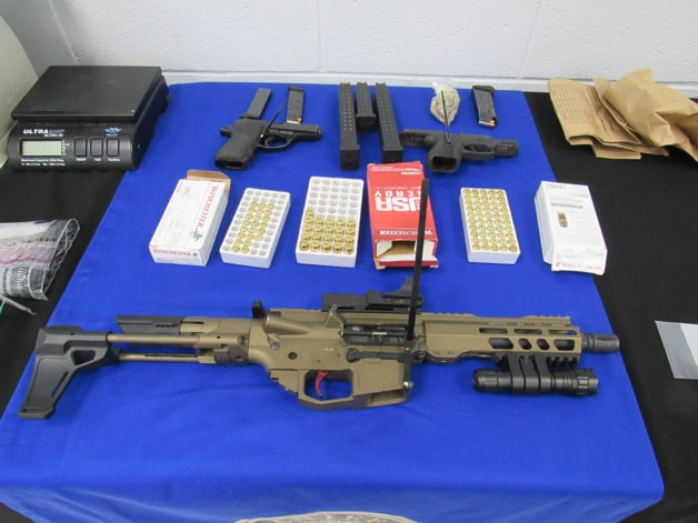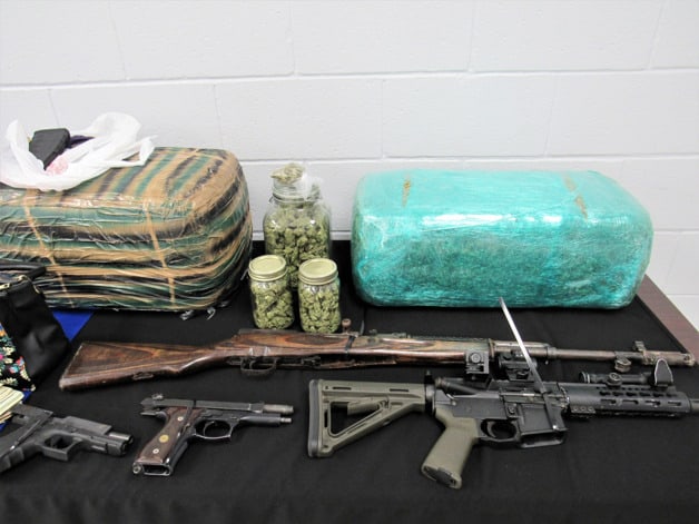 Los arrestados recibieron cargos por posesión de drogas, sustancias controladas, armas de fuego prohibidas y por el abandono de un menor de edad.