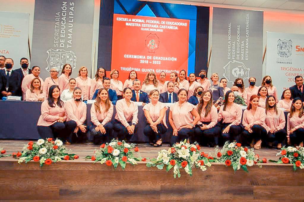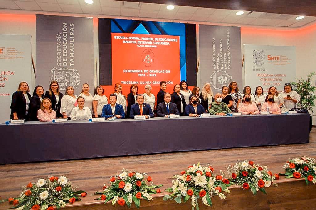 La ceremonia de graduación, de la generación 2018-2022 de la escuela Normal Federal de Educadoras, estuvo presidida por el Secretario de Educación Mario Gómez Monrroy; Rigoberto Guevara, dirigente de la Sección 30 del SNTE; Capitán Segundo de Infantería Luis Arellano García, en representación de la 48 Zona Militar, la Maestra Olga de la Rosa Estrada, directora del plantel.