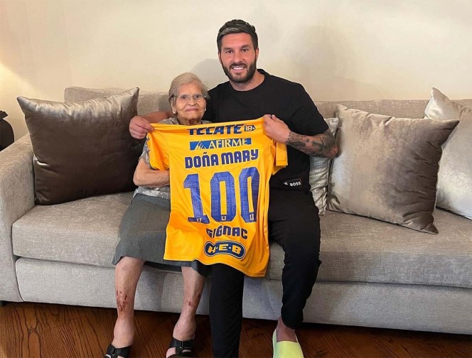 Gignac se enteró del deseo de la abuelita y decidió visitarla en su domicilio para saludarla personalmente y llevarle como regalo una camiseta con su nombre, el número 100 y beber una taza de café con ella y su familia.