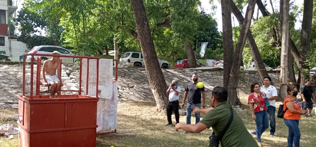 El juego del hombre al agua contó con la participación especial del equipo de beisbol Cardenales de la Liga Santa María de Aguayo, haciendo los peloteritos alarde de su puntería en el lanzamiento de pelota.