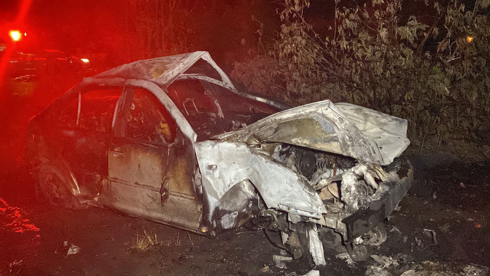 Después de dar varias volteretas el automóvil se incendió, quedando completamente consumido por el fuego.