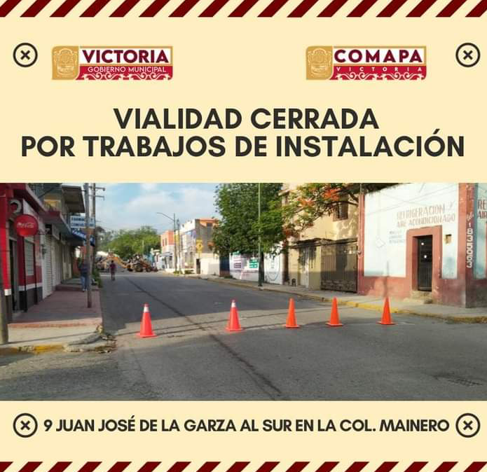 Comapa victoria informa que la vialidad estara cerrada hoy 7 de julio del presente año por motivo de trabajos de instalación.