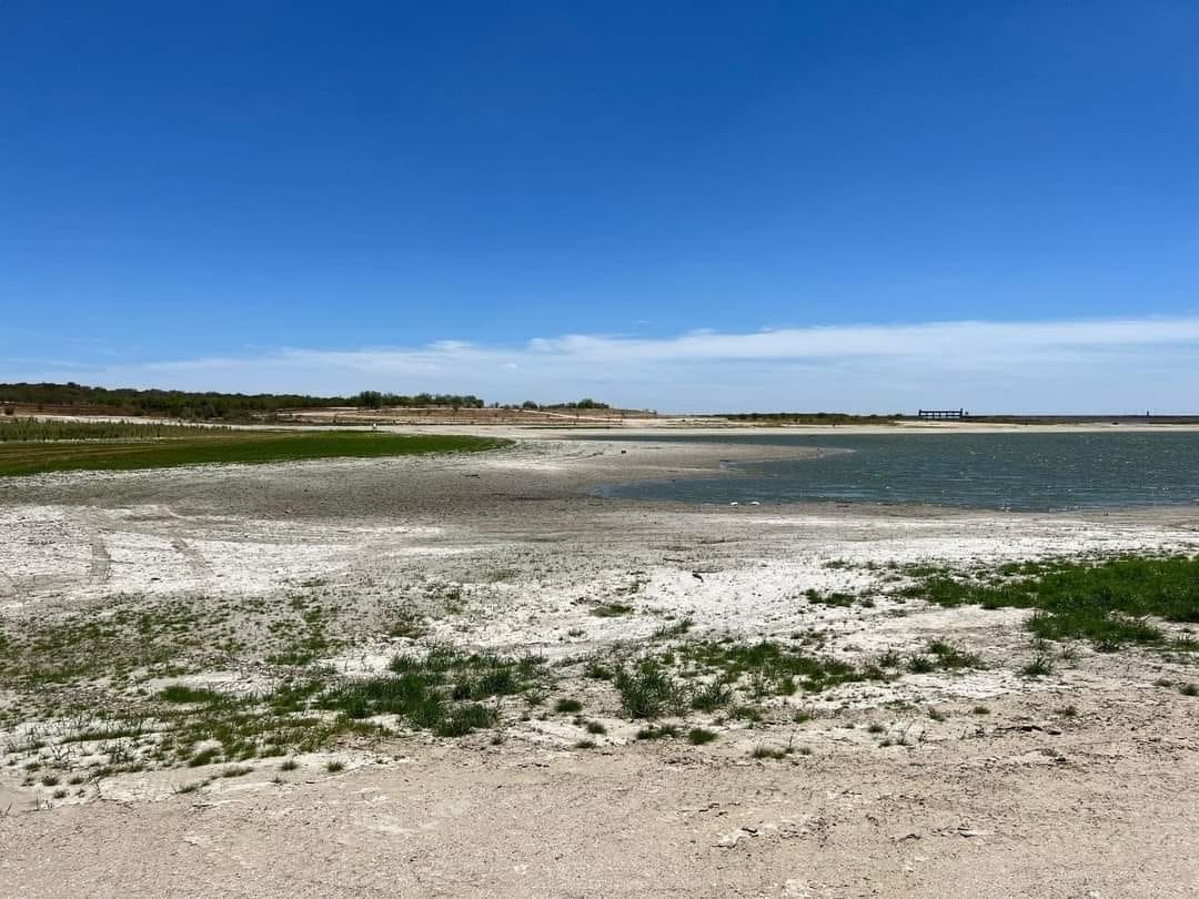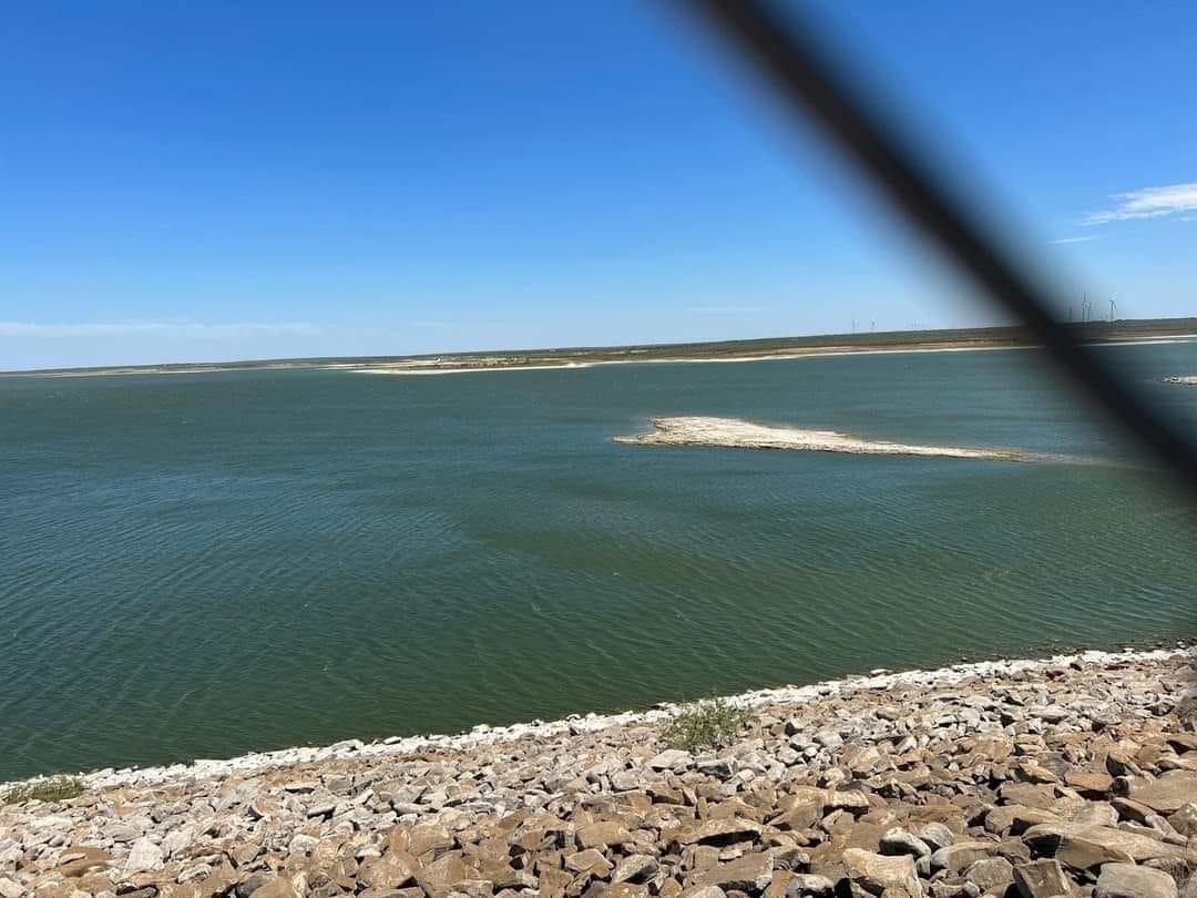 La extensión del agua retrocedió desde una rampa para botes y la costa del parque estatal Falcón, justo al norte de la presa, refieren.