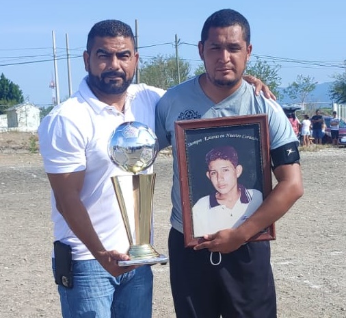 Ciudad Victoria.- En representación del alcalde Eduardo Abraham Gattás Báez, el jefe del Departamento del Deporte y la Juventud de Victoria, Carlos Pizaña, hizo entrega del trofeo al campeón de Copa del torneo que se desarrolla en la Colonia Huertas San Javier.