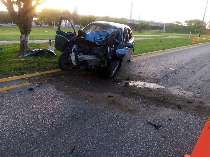 ALTAMIRA, TAMAULIPAS, 7 DE AGOSTO DE 2022.- El conductor de un vehículo perdió la vida a causa del traumatismo de cráneo que sufrió después de estrellarlo contra un árbol este domingo.