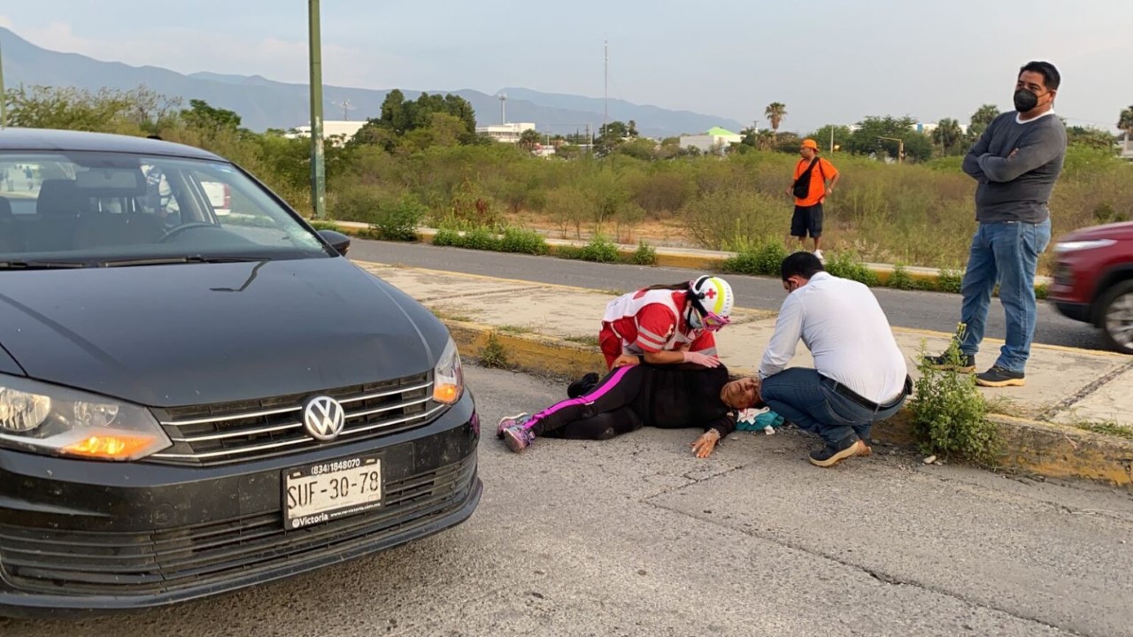 CD. VICTORIA, TAMAULIPAS, 16 DE AGOSTO DE 2022.– Cuando andaba haciendo ejercicio una mujer no tuvo la debida precaución al cruzar una transitada arteria y acabó siendo embestida por un vehículo.