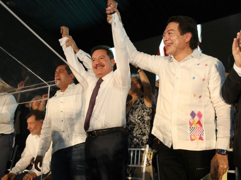 Mier Velazco recibió el espaldarazo por parte de los coordinadores del Verde Ecologista, PT en San Lázaro, del presidente nacional de Morena, Mario Delgado, los gobernadores de Michoacán, Morelos, Sinaloa, San Luis Potosí, el presidente de la Cámara de Diputados, Sergio Gutiérrez Luna.