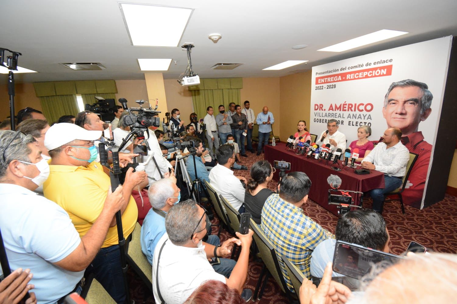 CD. VICTORIA, TAMAULIPAS, 21 DE SEPTIEMBRE DE 2022.- El gobernador electo de Tamaulipas, Américo Villarreal Anaya denunció una embestida judicial amañada de Francisco García Cabeza de Vaca, con base a guerra sucia de descrédito e injurias contra su persona y su familia y advirtió que el mandatario y la Fiscalía de Justicia están por utilizar a un Juez de Control para librar ocho órdenes de aprehensión contra él y compañeros de su movimiento, entre ellos Eduardo Gattás, Carlos Canturosas y Manuel Muñoz.