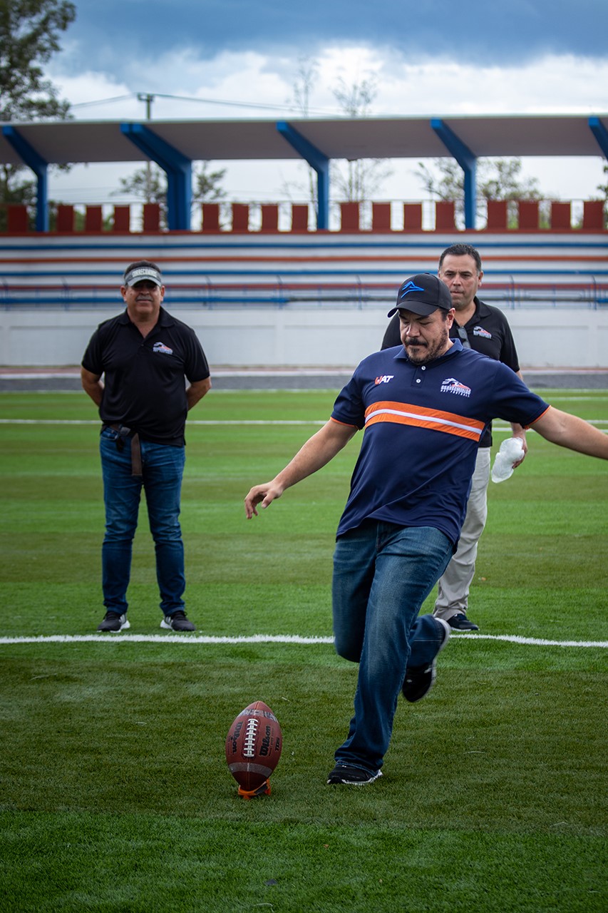 Previo al encuentro inaugural de este sábado, el Rector Guillermo Mendoza hizo la presentación del Correcaminos de la UAT donde recibió el jersey oficial del equipo y resaltó la importancia de impulsar el futbol americano así como las diferentes disciplinas deportivas en la casa de estudios.